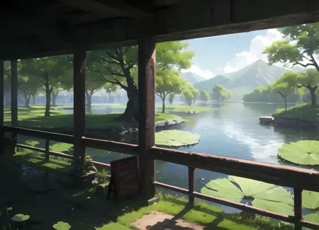 Unlike v1.0 this version is a lot better at depicting prompted backgrounds and landscapes in the right style. Setting the weight to .9 tends to be enough to reduce the random semi japanese symbols.