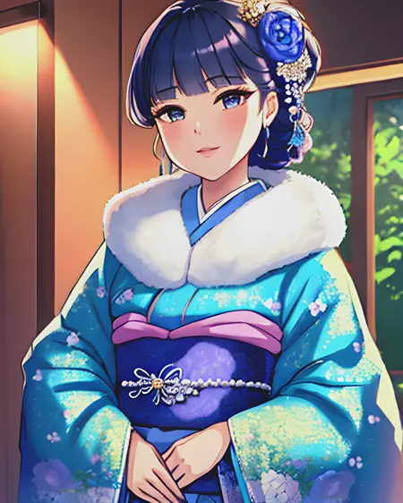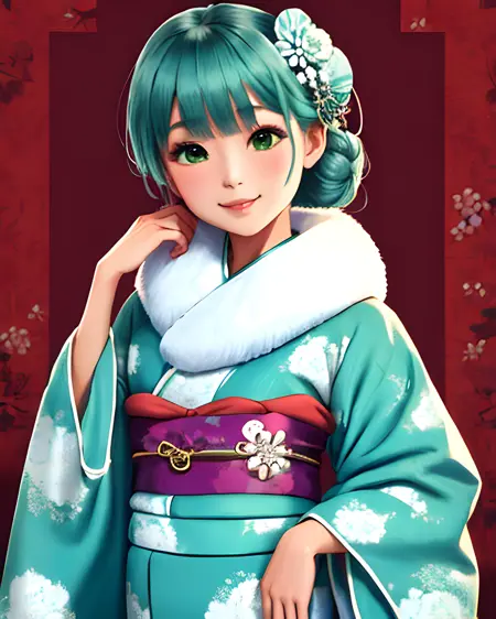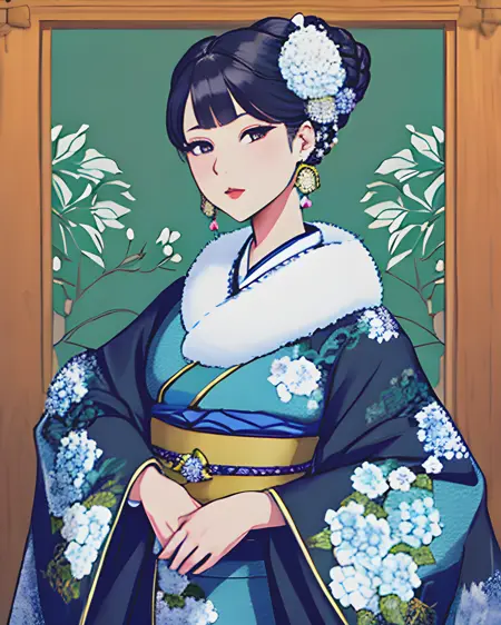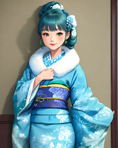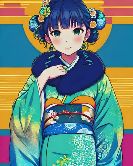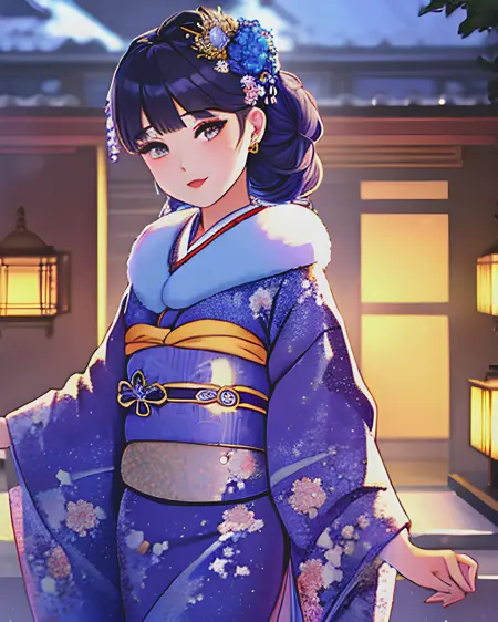 襟/スカーフ付きの日本風振袖を生成するためのLoRAです。その日本語名がどうしても見つからなかったのですが、正月や成人式などの特別な行事で着られているのを見かけます。