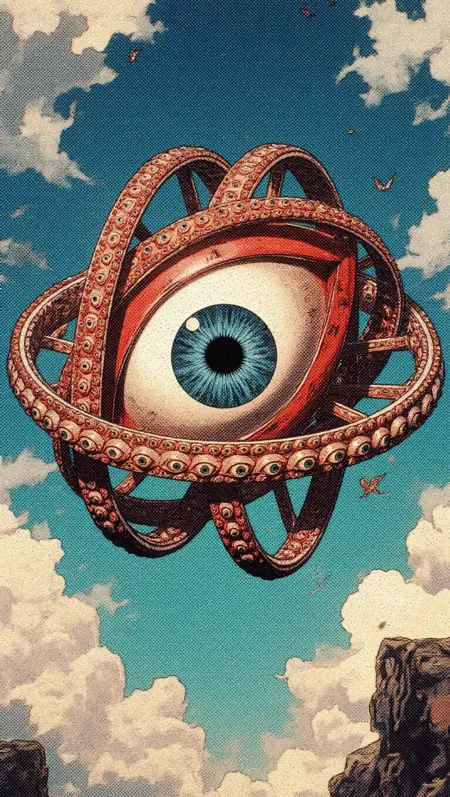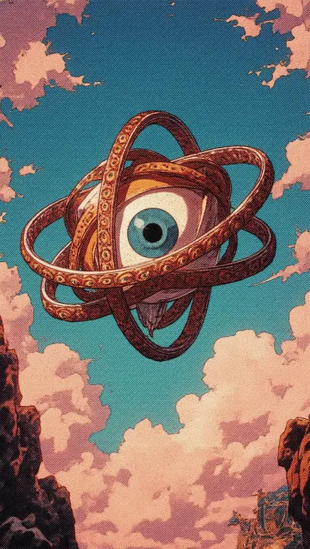 Ophanim, wheel-like creature, floating, symmetrical wheels, 4wheels.