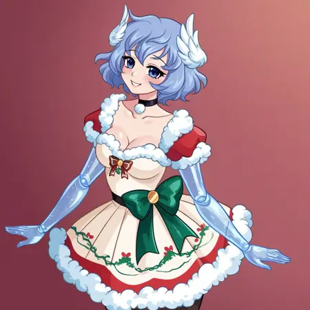节日装:圣诞裙、翅膀发饰、可拆卸短袖、白色连衣裙、毛边裙、绿色丝带、黑色项圈,