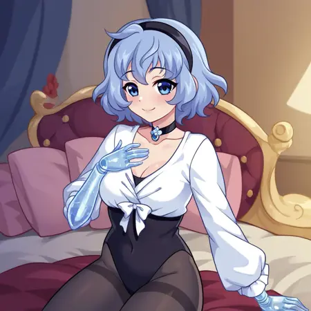 蓝色玫瑰裙:蓝色玫瑰发饰、蓝色玫瑰裙饰、金色项圈、蓝色玫瑰项圈、露胸、可拆卸袖子、无肩带连衣裙,