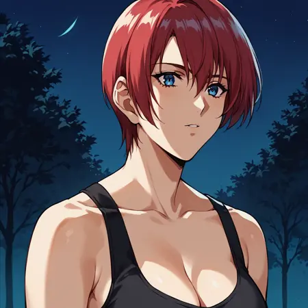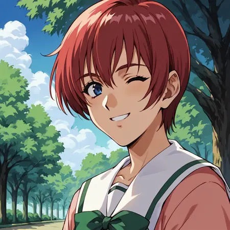 asami, 1girl, 红发, 短发, 蓝眼, 校服