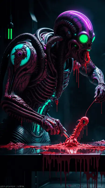 推荐提示词: 克苏鲁,洛夫克拉夫特式克苏鲁,洛夫克拉夫特风格,克苏鲁教团,渐变色彩,丛林,反基督十字架,圣彼得十字架,动态姿势,锐利发光的眼睛,绿色眼睛,眼燃火焰,火焰之眼,霓虹绿眼,(数字插画,Duy Huynh),杰克逊·波洛克(杰作,最佳画质,美丽且有审美:1.2),电影感,杰作,最佳画质,细节丰富,最高画质,高分辨率,电影光影,绚丽多彩,虚化背景,RAW照片,艺术肖像,高对比度,色彩丰富,极致细节,霓虹色,从黑暗中生长并交织的鲜红血管,渗出浓稠鲜血,血管生长并泵血,血管网络扩张、连接、蔓延,遍布红色血管,Zdzislaw Beksinski,脑吞噬者,(低饱和度色彩:1.1),(重复:1.1),(交叉排线:1.1),(红外:1.2),锈迹,球体,极致细节,繁复,画布油画,(干笔触,超清晰),(超现实主义:1.1),(令人不安:1.1),Beksinski风格绘画,火花,镜头光晕,轮廓光,背光,手镯,RTX,后期处理,撒旦十字架,(杰作,细节丰富,高分辨率:1.2),Zdzislaw Beksinski,吉格尔风格,Beksinski风格,撒旦十字,倒十字,撒旦主义,撒旦符号,撒旦本身,(身体恐怖:1.4),(生物机械:1.3),(血腥:1.2),活体生物,(色彩丰富:1.2),汉斯·吉格尔,多只手,(禅天图案:1.2),(色彩丰富:1.3),(杰作:1.2),最佳画质,原创,超精细壁纸,高度细节化,极度精细,电光感,(高对比度:1.1),(反射光:1.2),极致细节,干笔触,(超现实主义:1.1),(令人不安:1.1),(小屋风),(几何:1.2),(未来主义:1.2),印象派,(细节丰富),(宏伟:1.2),(令人叹为观止),(暗示性:1.3),(压抑:1.3),(可爱:1.4),(诱人:1.4),(无法抗拒:1.4),令人不安,(迷人:1.2),(磁性:1.2)