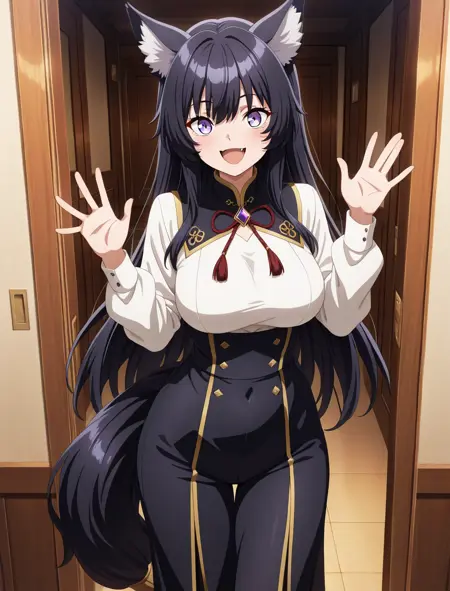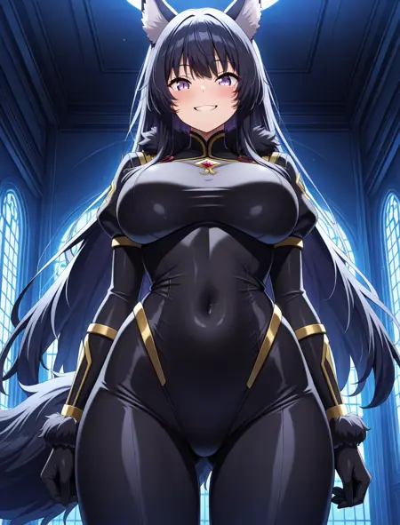 그림자 속의 에미넨스에서 델타. 꼬리, 얼굴 무늬와 같은 단어를 추가하는 것이 매우 잘 작동합니다. 옷은 검은 바디수트만 추가하세요.