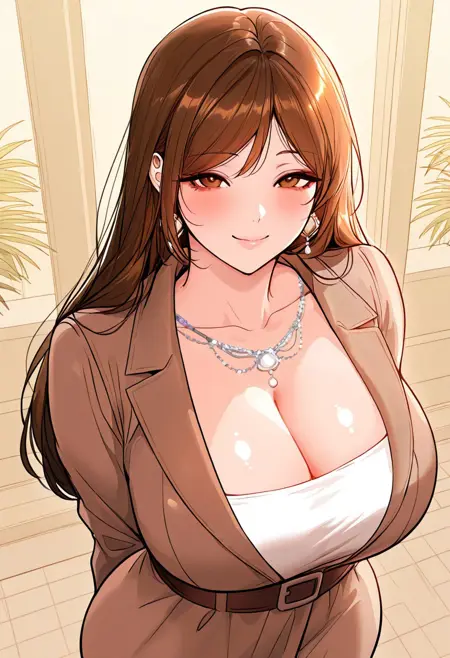 ((lora:ha-ri's_mom:1, ha-ri's_mom, 鋭いブラウンの目、クリアな目、明るい瞳、美しい目、美しいブラウンの髪、美しいロングヘア、前髪、巨大でふくよかな胸、細いウエスト、広いヒップ、美しい肌、ナチュラルビューティー、並外れた美しさ、魅力的な女性、超セクシーな女性、欲望に満ちたボディ、誘惑的な過剰なボディを持つセクシーな女性、官能的なボディ、豊満なボディ、セクシーな美しさ))