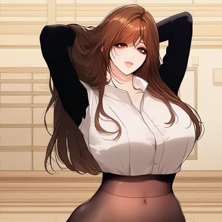 ((lora:ha-ri's_mom:1, ha-ri's_mom, 鋭いブラウンの目、クリアな目、明るい瞳、美しい目、美しいブラウンの髪、美しいロングヘア、前髪、巨大でふくよかな胸、細いウエスト、広いヒップ、美しい肌、ナチュラルビューティー、並外れた美しさ、魅力的な女性、超セクシーな女性、欲望に満ちたボディ、誘惑的な過剰なボディを持つセクシーな女性、官能的なボディ、豊満なボディ、セクシーな美しさ))
