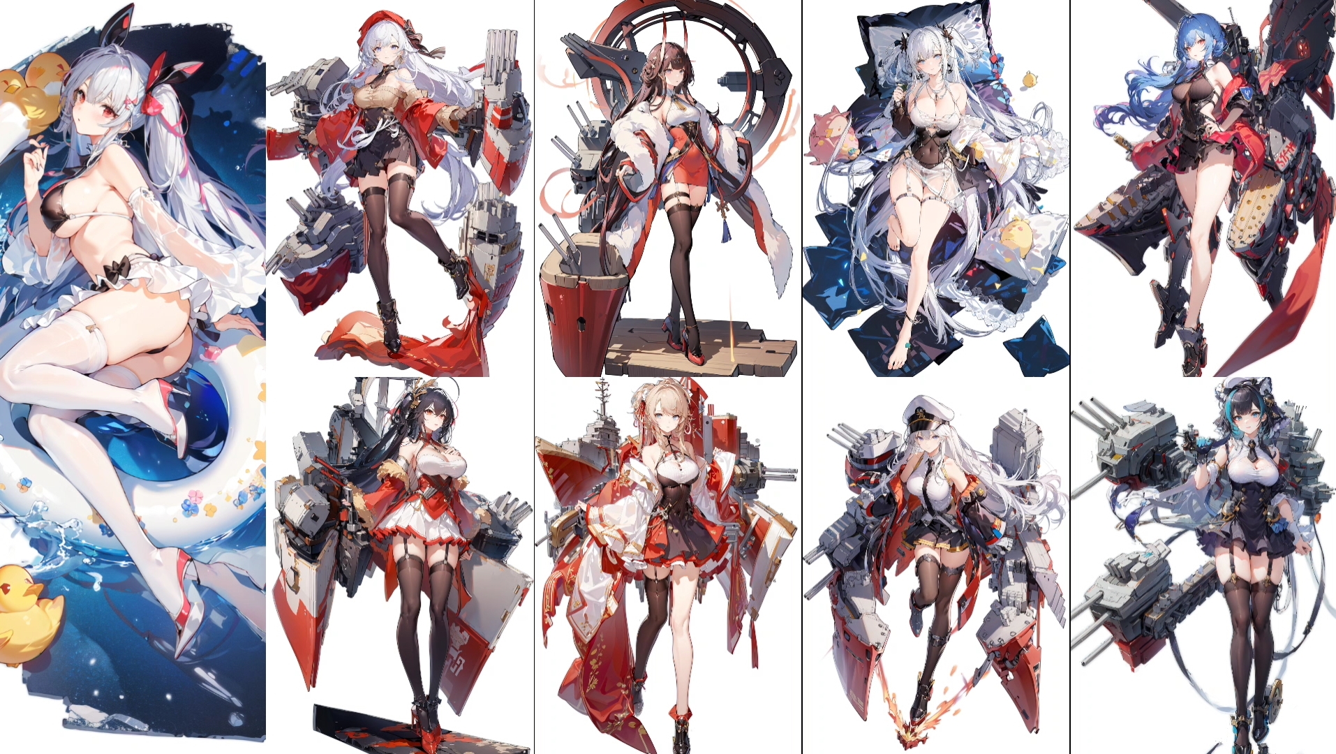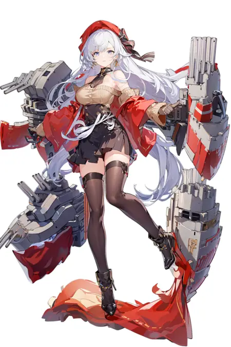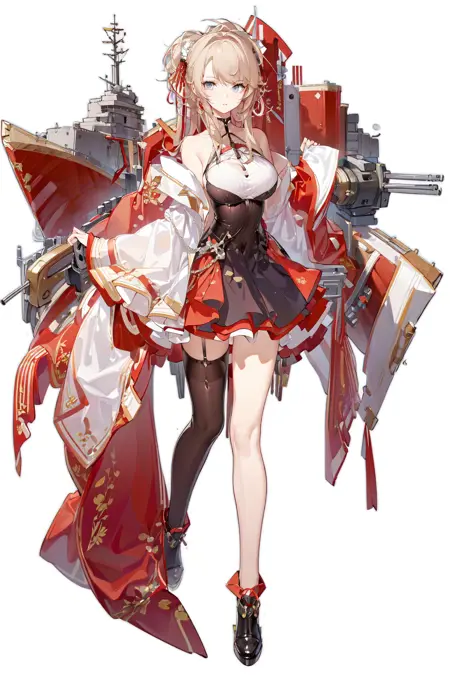本模型旨在训练一个适合绘制碧蓝航线角色立绘的模型,因为现有的立绘LoRA无法绘制舰装,且与许多碧蓝角色的适配性也很差(最重要的是它“不能涩涩”),所以我专门挑选了92张碧蓝航线立绘解包图,专门训练了一个碧蓝航线立绘LoRA。我知道你们想问什么——可以的,可以涩涩,因为本身用的都是碧蓝航线的立绘图,所以与C站各种碧蓝角色LoRA的适配性都非常好,建议权重在0.5~0.8之间,太高会导致过拟合。各种碧蓝皮肤元素应有尽有:泳装、温泉、旗袍、黑丝、白色、钢琴、舞会等等,也可以绘制舰装图,舰装关键词是:rigging、machinery、cannon、turret,建议使用竖版,分辨率为512*768。关键词格式如下: