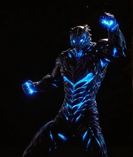 走るポーズの場合:「サビタール、神速の神、スピードフォースのトンネル内で光速より速く走り、白い稲妻の尾を引きながら走る」