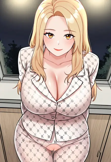 Han Seung-Hee: han_seung-hee, piercing amber eyes, beautiful blonde hair, beautiful long hair, bangs, huge and shaggy breasts,