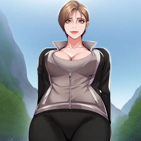 Seon Choi: seon_choi, beautiful amber eyes, beautiful light brown hair, beautiful short hair, huge and shaggy breasts,