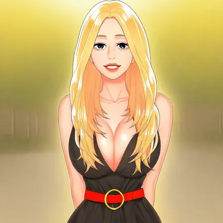Mi-Yeon:mi-yeon、美しい青色の瞳、美しい金髪、美しい長い髪、肩越しの髪、ロー・ポニーテール、巨大でふわふわした胸、
