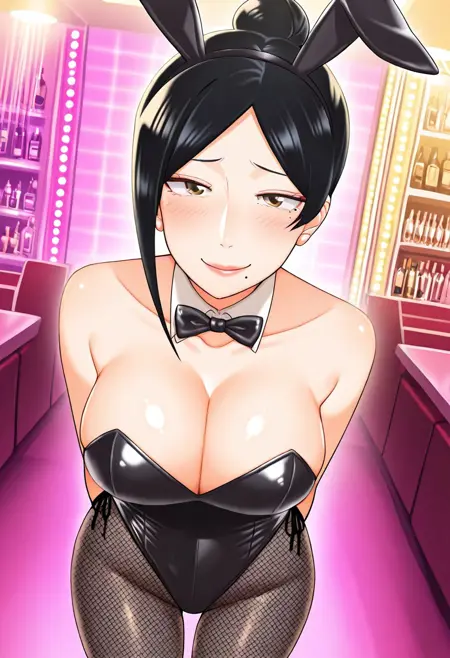 Su-Min:su-min、鋭い青色の瞳、美しい濃い紫髪、美しいミディアムボブ、前髪、巨大でふわふわした胸、+黒枠メガネ、