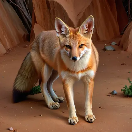 킷 여우: kitfox, 갈색 털, 얼굴 무늬, 작음
