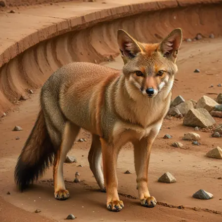 블랜포드의 여우: blanfordsfox, 갈색 털, 검은 얼굴 무늬, 중간 크기 귀, 작음