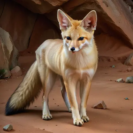 뤼펠의 여우: ruppellsfox, 중간 크기 귀, 검은 눈, 작음