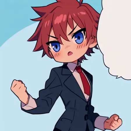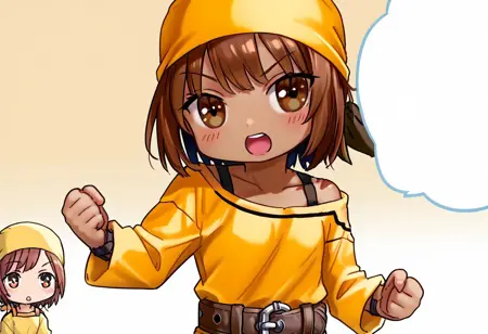 タグ: yuri_conquer, 2girls, female focus, chibi, multiple girls, open mouth, :D, blush, clenched hand, speech bubble, blank speech bubble