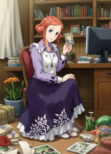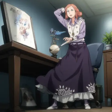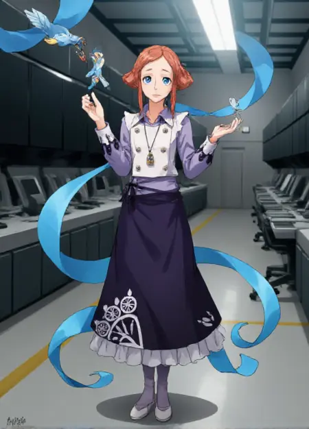 她的鸟笼吊坠和非ary游戏手镯容易出现不一致的情况。训练数据中这两者通常模糊不清,仅提示而非清晰呈现细节,这问题也延续到了LoRA中。