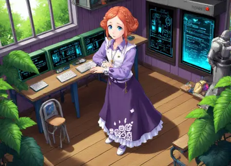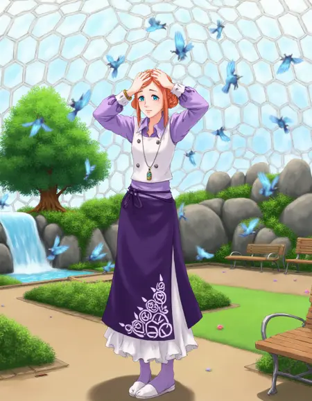 双手扶额:她常做的那种把双手举到头部的奇怪动作。由于训练数据较少,效果不如预期理想。但当她被描述为害羞或尴尬的表情时,有时仍会出现。你也可以通过以下描述触发:“露娜双手扶额,手肘弯曲,上臂抬起,显得有些尴尬。”