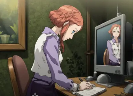 《美德的最后报酬》短篇OVA的动漫风格(因训练数据不足,效果较弱):“VLR动漫风格。”