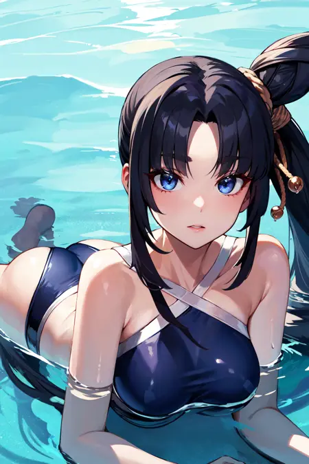 outfit3hmushiwa、サイドポニーテール、長い髪、単一の髪結び、片側の髪結び、鎖骨、水着、青いビキニ
