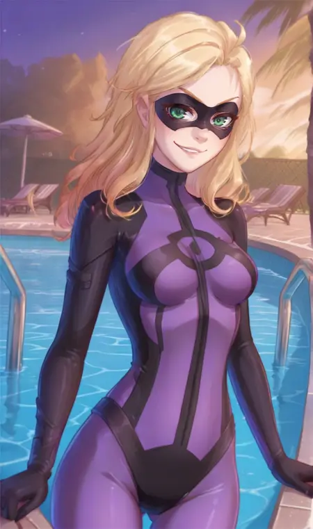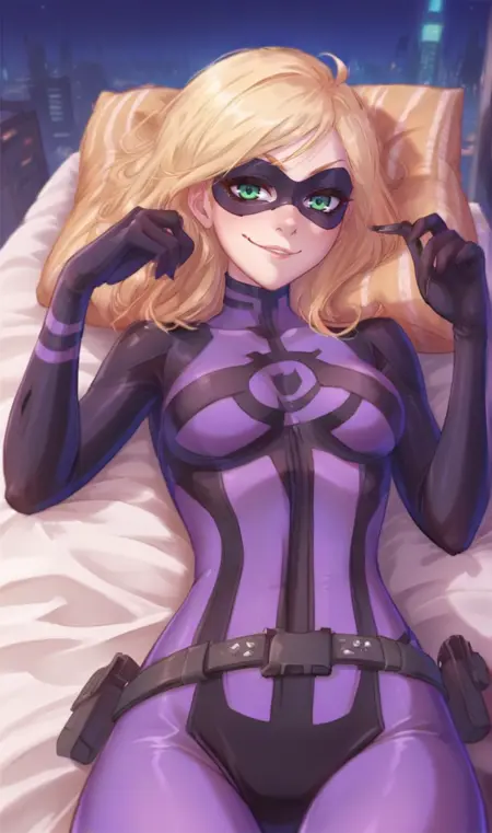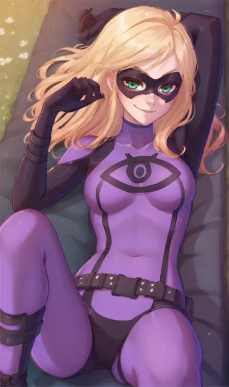 触发词:告密者、紫色紧身衣、蝴蝶面具、绿色眼睛、金色头发