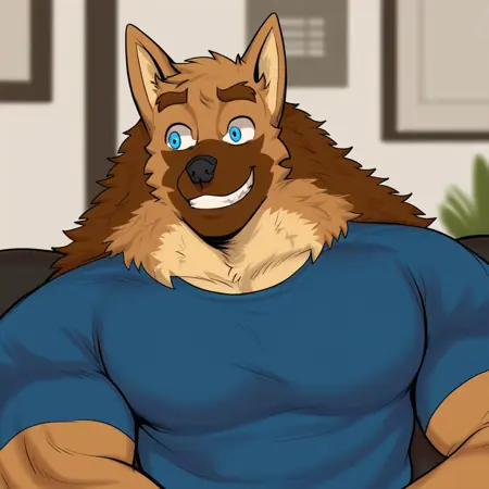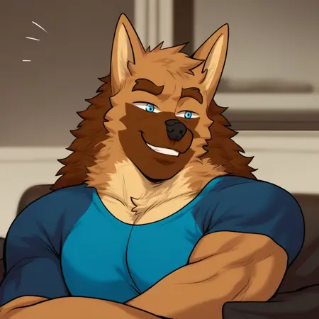 Jacob, broad shoulders, mature male, blue eyes, muscular male, athletic build, brown hair, anthro, wolf, animal ears, tan body, bara, scruffy, light underbelly, pecs, defined features, wide hips, thick thighs, big butt, big ass, big dick