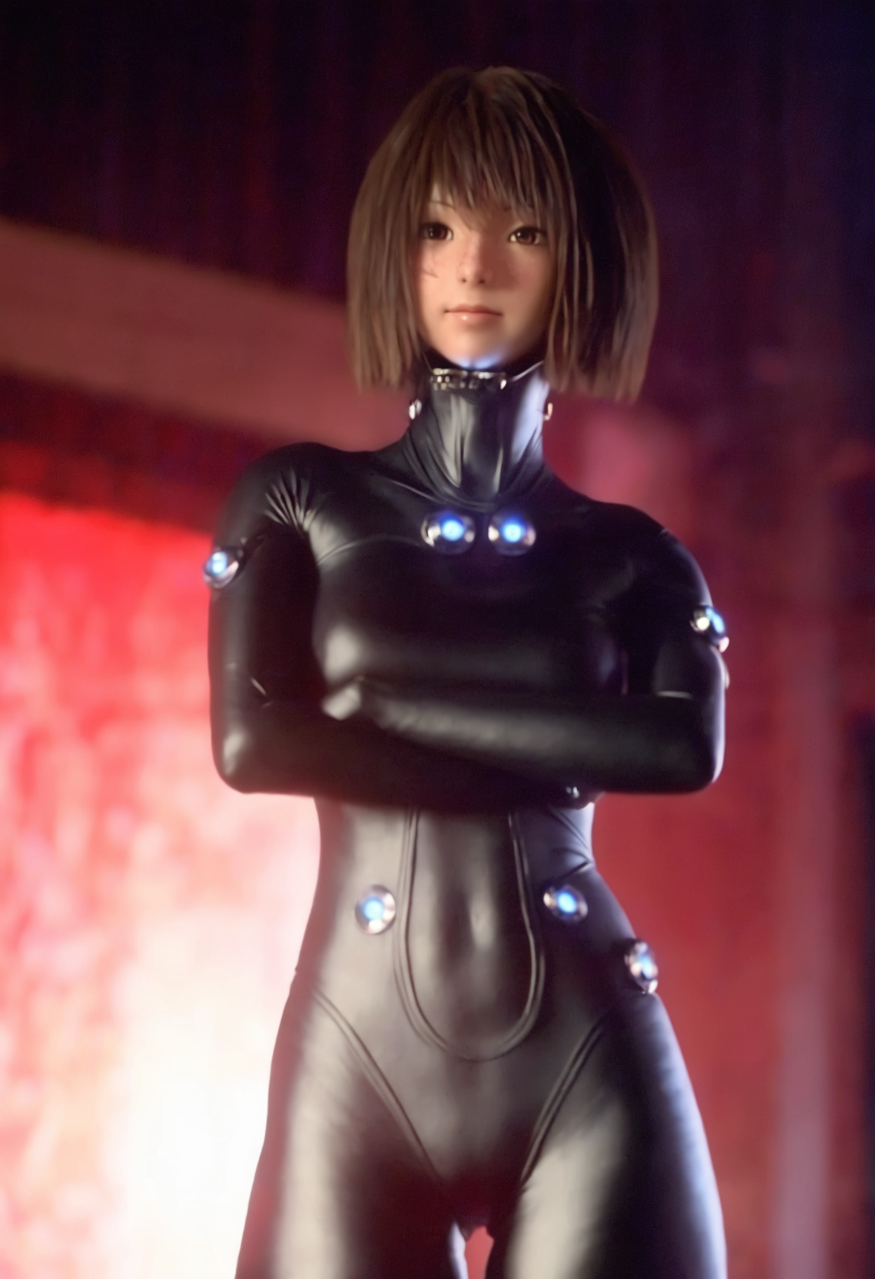 anzu, short hair, brown hair, bodysuit