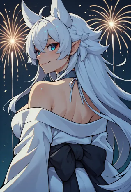 触发词 + 外观: lv2fenrys, 白发, 动物耳朵, 尖耳朵, 大乳房