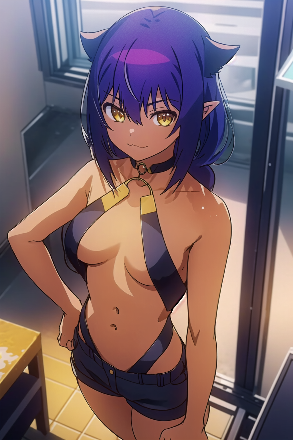 デフォルトの衣装ヘルパー: レザーストラップ、ショートショーツ、シンソブーツ