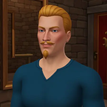 1man, blonde hair, blue eyes, goatee, moustache, blue pullover