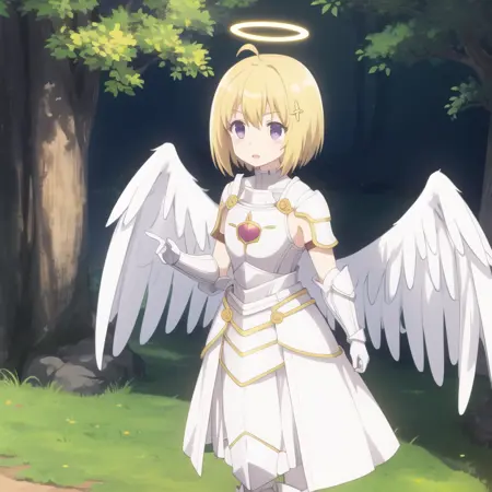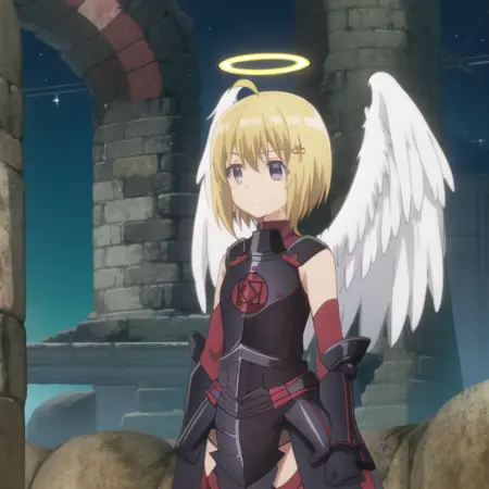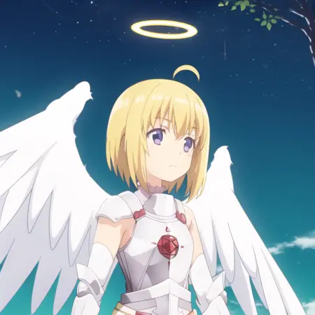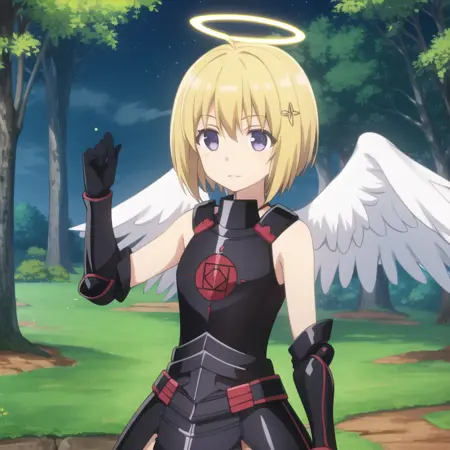 Trigger Word: bofuri-maple, black armor, white armor, blonde hair, black hair, white wings, halo