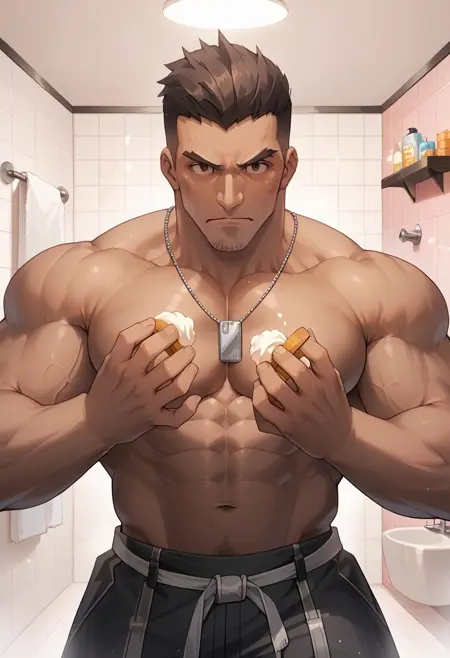 生成他的情感(重新着色)装扮 - 死神 \(heartbreaker\) \(守望先锋\),肌肉发达,短发,黑发,深蓝眼睛,面部疤痕,脸颊疤痕,情感,面部彩绘,黑头罩,上衣,深紫色纹身,无指手套,创可贴,腰间衣物,腰带,黑裤,黑色恶魔之翼