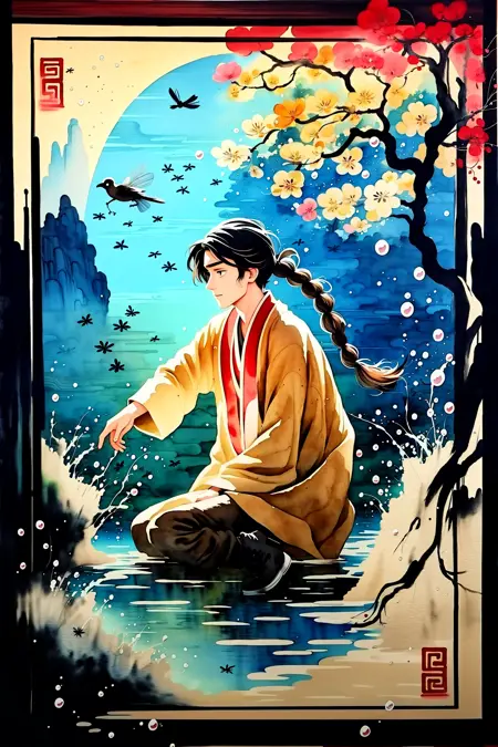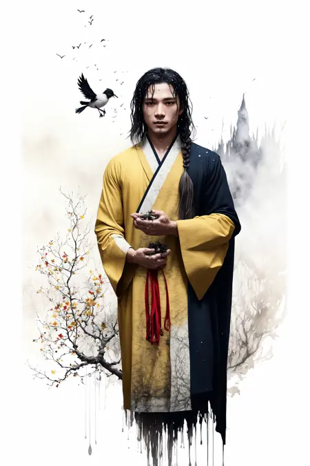 水墨効果に特化したLoRAで、下記の他のLoRAと組み合わせるとより良い効果が得られます。