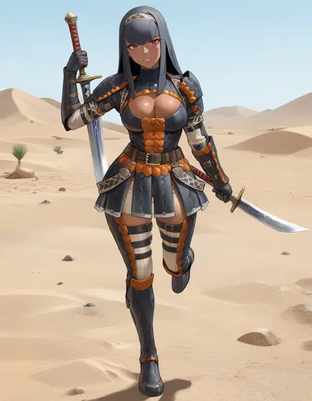 标签(服装):吉普塞罗斯铠甲、黑色头罩、黑色膝靴、黑色肩甲、黑色过膝袜、黑色肘套、黑色短裙、白色内裤