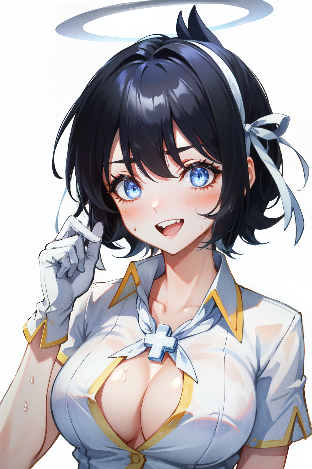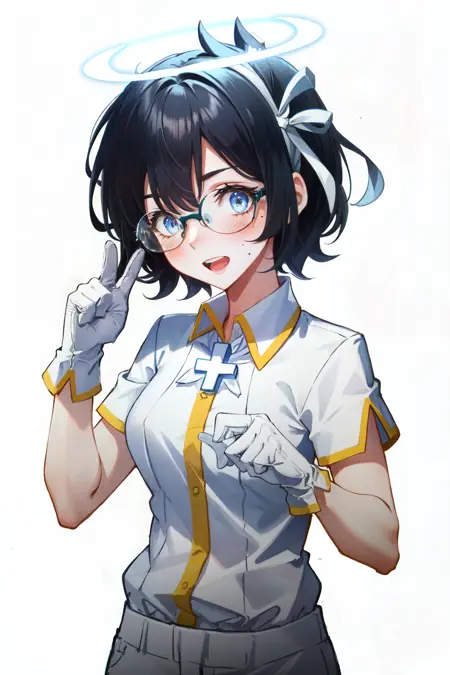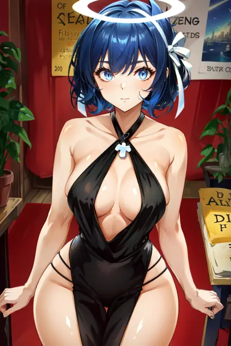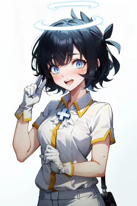다음 태그를 사용하세요: 짧은 머리, 환상, 검은 머리, 파란 눈, 머리 리본