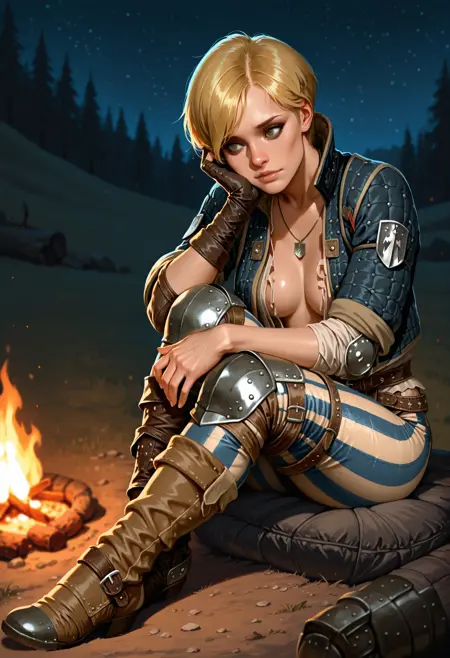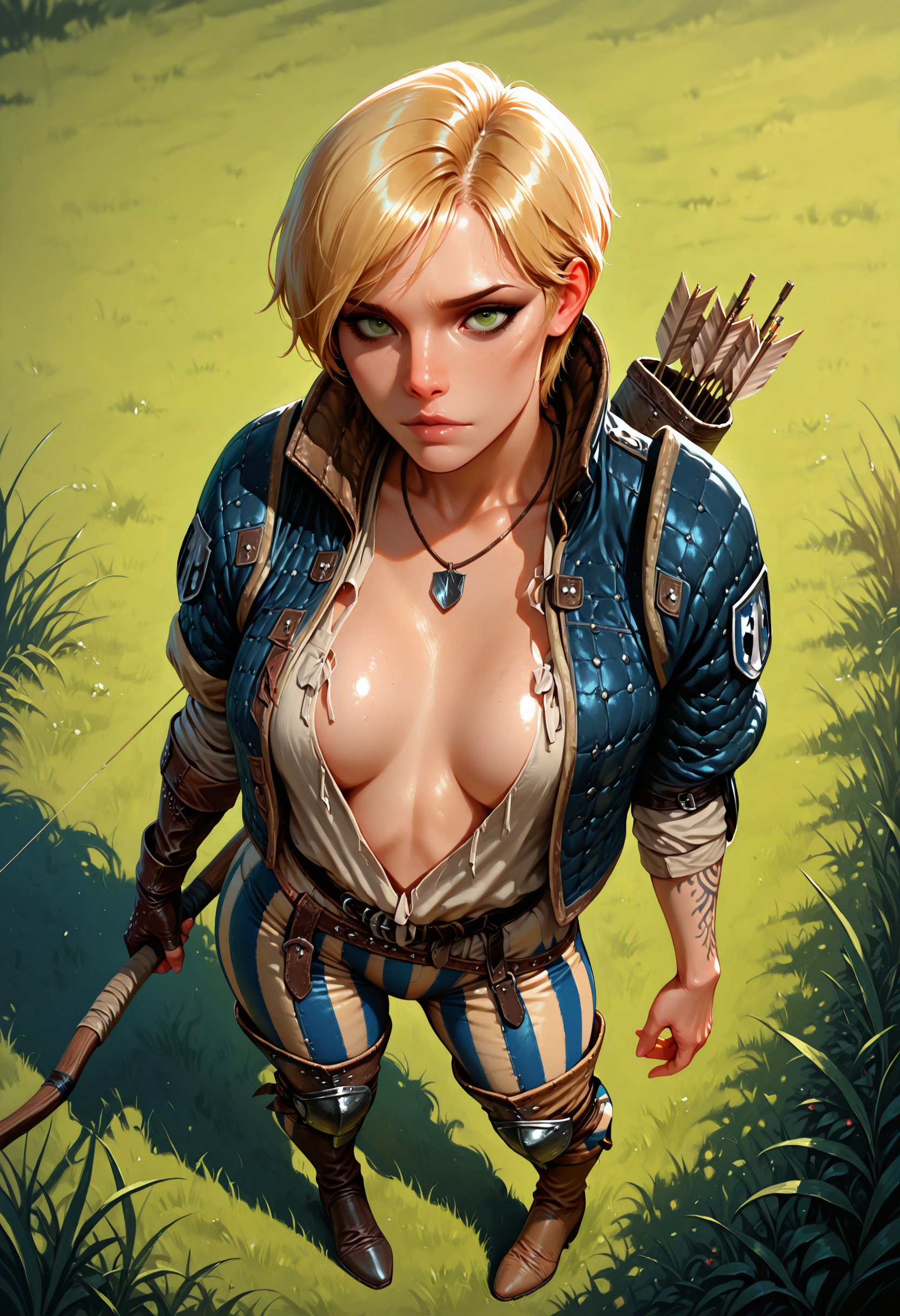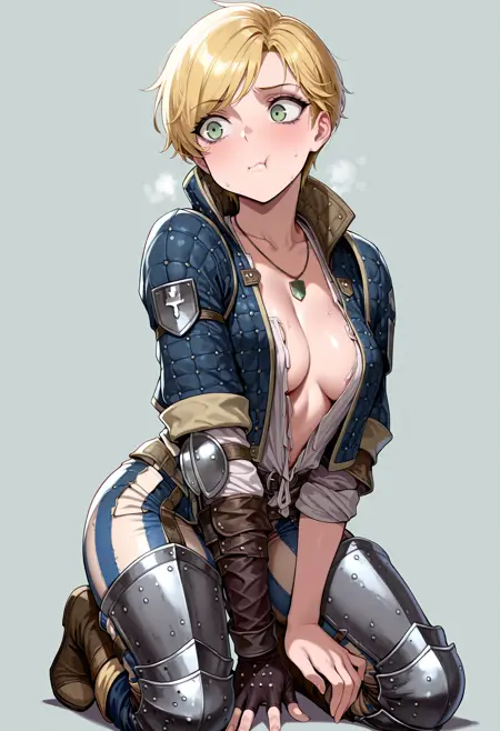 트리거 단어: Biancawaifu, 금발, 녹색 눈, 보석, 재킷, 줄무늬 바지, 벨트, 한 손 장갑, 손가락 없는 장갑, 목걸이, 드러난 옷, 갑옷, 무릎 패드, 허벅지 부츠,