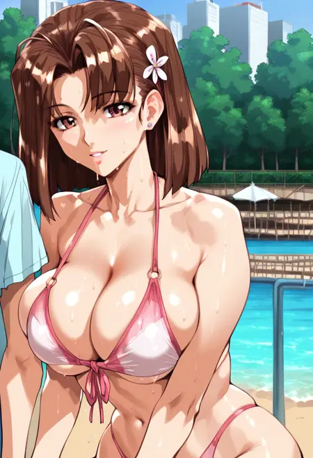kubotaaki, brown hair female, brown eyes, hair ornament, large breasts, pencil skirt, short sleeves