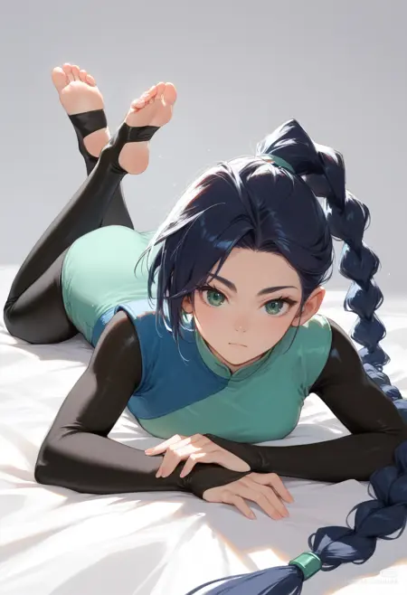 1. 正常:meihuashisan,1girl,very long hair,bodysuit,dress,green eyes,braided ponytail,