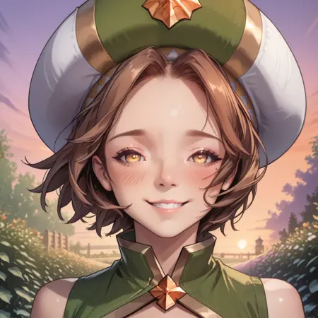 トリガーワード: Sophie Dragalia、茶色の髪、短い髪、黄色い目、目下のほくろ、大きな胸、広い hips、