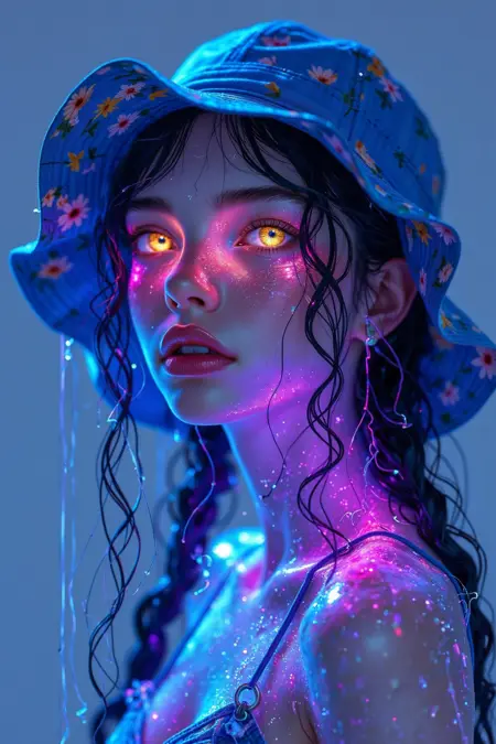 这种风格是一种视觉表现,融合了前卫与开创性的艺术,强调光影的梦幻与流动特质。它通过细腻的细节和丰富的色彩,捕捉肖像的真实美感。作品常呈现出耀眼的光斑、绚丽的虹彩效果和反光材质,营造出一种近乎超现实的视觉体验,充满独特而富有未来感的艺术氛围,仿佛置身于梦境与现实交织的世界。这种风格旨在通过引人入胜的细节和强有力的色彩组合,引领观众进入前卫视觉艺术的领域。