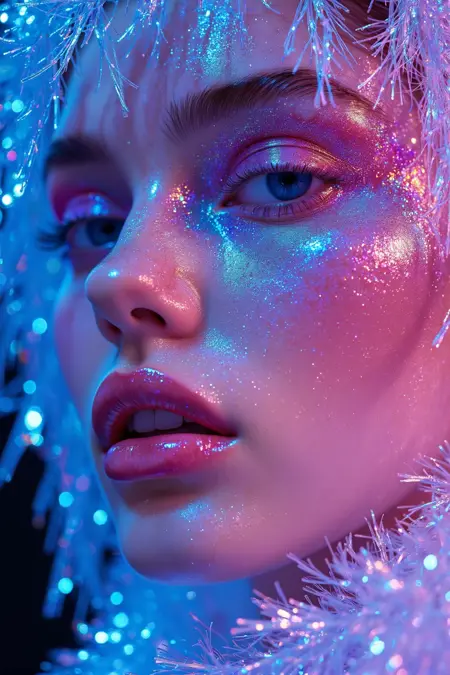이 스타일은 전위적이고 선구적인 예술을 융합한 시각적 표현으로, 빛과 그림자의 꿈같고 유동적인 본질을 강조합니다. 세밀한 디테일과 풍부한 색채를 통해 초상화의 현실적인 아름다움을 포착합니다. 이 작품들은 화려한 빛의 반점, 빛나는 황금색 효과 및 반사 재질을 자주 포함하며, 꿈과 현실이 얽힌 세계에 몰입한 듯한 독특한 미래적이고 예술적인 분위기를 지닌 거의 초현실적인 시각 경험을 창출합니다. 이 스타일은 매력적인 디테일과 강력한 색상 조합을 통해 관객을 전위적 시각 예술의 세계로 이끕니다.