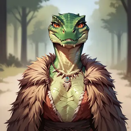 トリガー語: lizardfolk, anthro lizard, slit pupil, scales, tail,