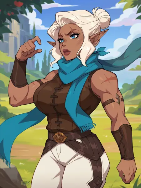 Recommend prompt : "p_ke, 1girl, gnome, short body,scar on eye, white hair, short hair, bun hair, blue eyes, elf ears"