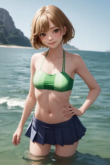 Default Outfit: bandaid on face, school uniform, serafuku, sailor collar, pleated skirt
