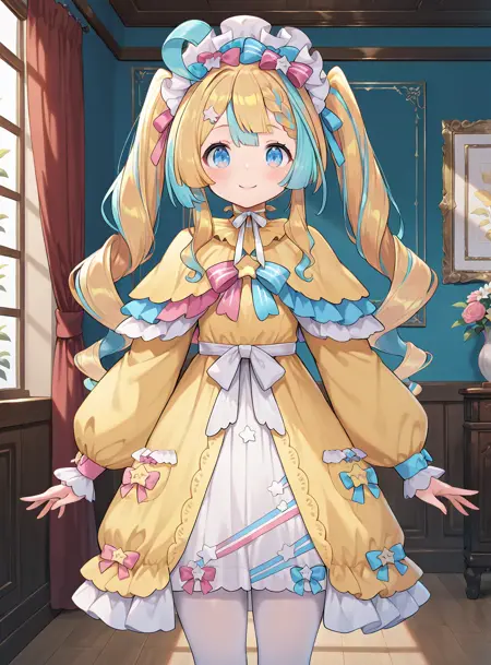 long hair, Spiral twintails, colored inner hair, two-tone hair, multicolored hair, streaked hair,
