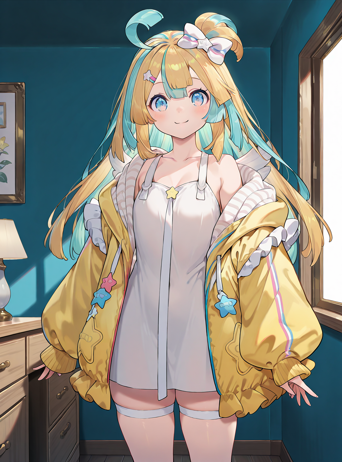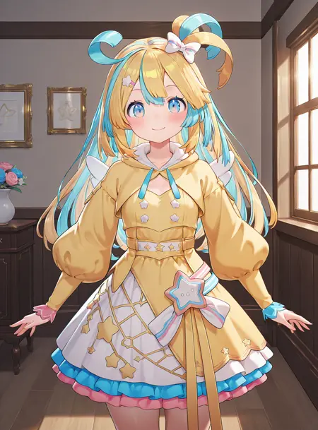 long hair, colored inner hair, two-tone hair, multicolored hair, streaked hair, ahoge, star hair ornament,