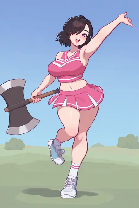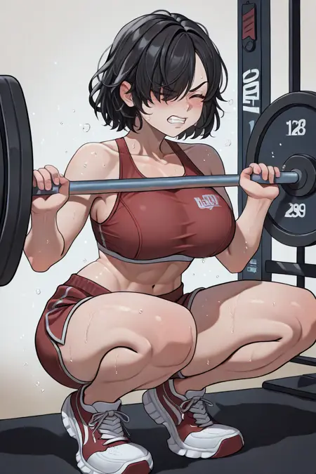 彼女の典型的な外見を表現するには、「深紅のボディスーツ、長袖、アーマー、ガントレット」を追加してください。