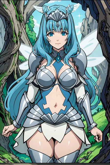 Outfit, skirt, Pauldrons, Shoulder armor, navel cutout, boots,