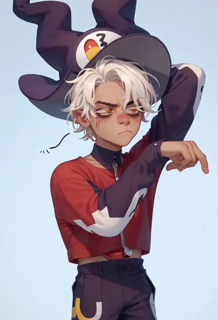白发,深色皮肤,深色皮肤男性,异瞳,红眼,黄眼,露肩,露肩衬衫,短发,锁骨,