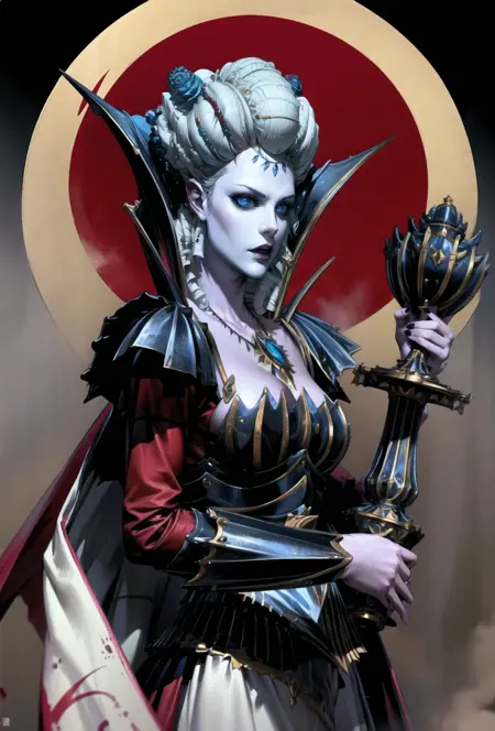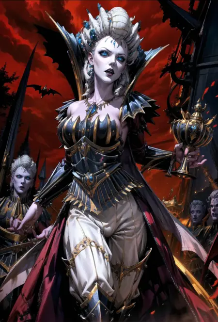 "Isabella" activation, "glowing blue eyes, pale skin, vampire" helps.